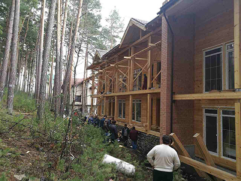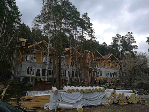 - в третьей и четвертой секциях шале ведутся работы по шумоизоляции и отделке перегородок фальшбрусом. Также идут к завершению работы по укладке черепицы, она смонтирована уже на 90%.