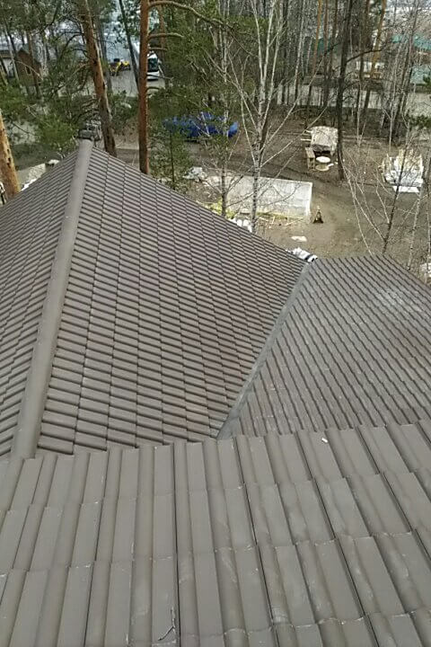 В скором времени новый дом-шале №15, рассчитанный на 32 уютных апартамента, приобретет совершенный вид. На сегодняшний день крыша 1 и 2 секций дома уже полностью, на 100%, покрыта черепицей, на 3 и 4 секциях черепица смонтирована на 30%. Кроме того, установлены проходные короба в кровле для сетей.
