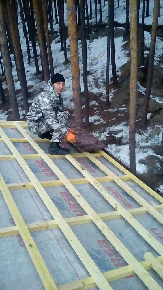 Что касается внешней отделки, то на сегодняшний день активно ведется монтаж черепицы. Крыша первой и второй секции дома-шале уже на 80%…