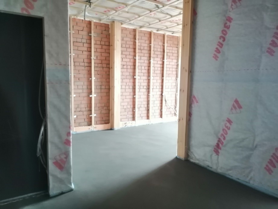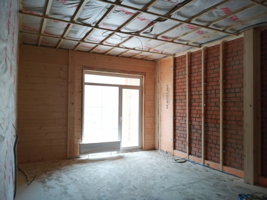 Во 2 доме завершены следующие работы: остекление проемов, заливка стяжки пола, устройство внутренних сетей отопления, вентиляции, канализации, водоснабжения, электроснабжения, слаботочные сети. Установлено котельное оборудование. Подходит к концу устройство межкомнатных стен на 1, 2 этажах. Межкомнатные стены на антресольном уровне начнут монтировать после устройства полов. Начаты отделочные работы – ведется укладка керамогранита в санузлах и устройство каркасов для дальнейшего монтажа потолков.